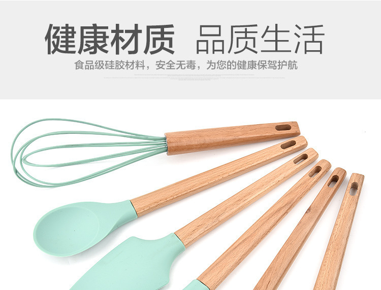 - 木柄硅膠廚具6件套,硅膠廚具六件套木柄