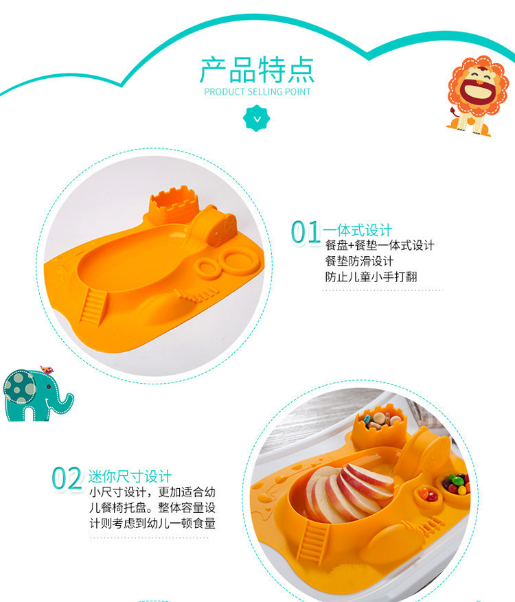 5、餐盤+餐墊一體式設計,餐墊防滑設計,防止兒童小手打翻
