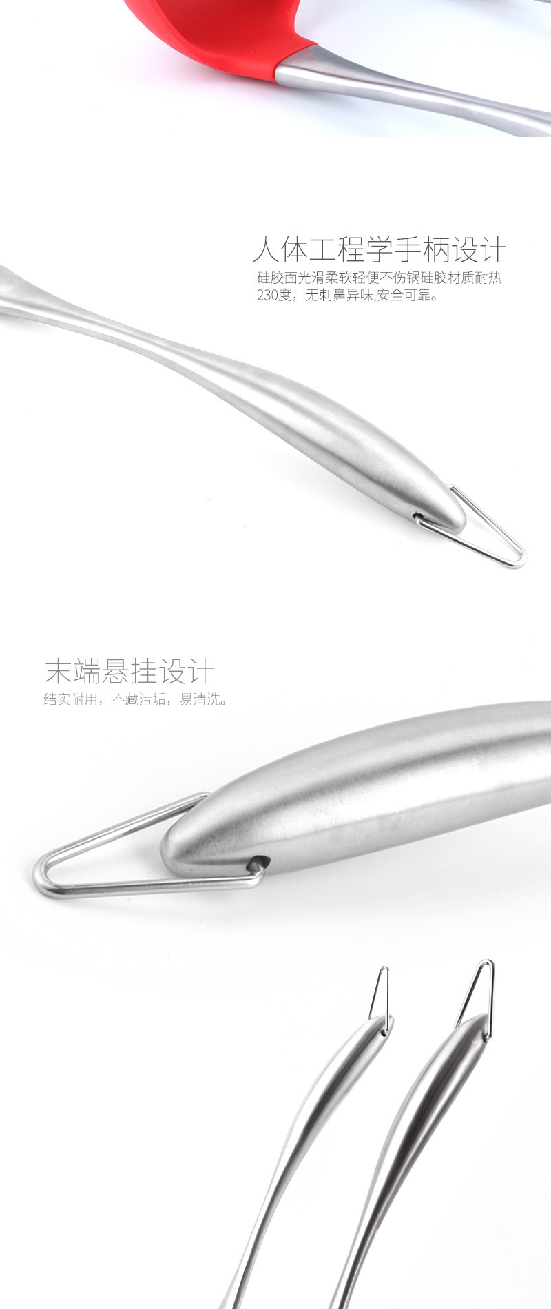 2、人體工程學(xué)手柄設(shè)計(jì),硅膠面光滑柔軟輕便不傷鍋,硅膠材質(zhì)耐熱250℃,無(wú)刺鼻異味,安全可靠