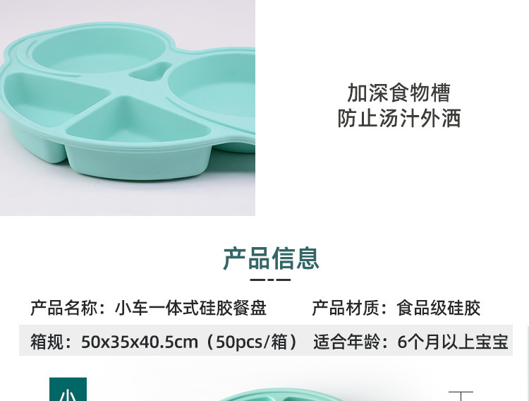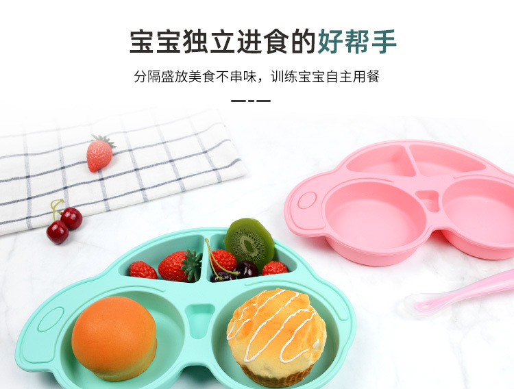 產(chǎn)品名稱:小車硅膠分格餐盤寶寶吃飯食品級(jí)安全無毒無味卡通小汽車兒童餐盤