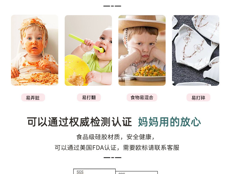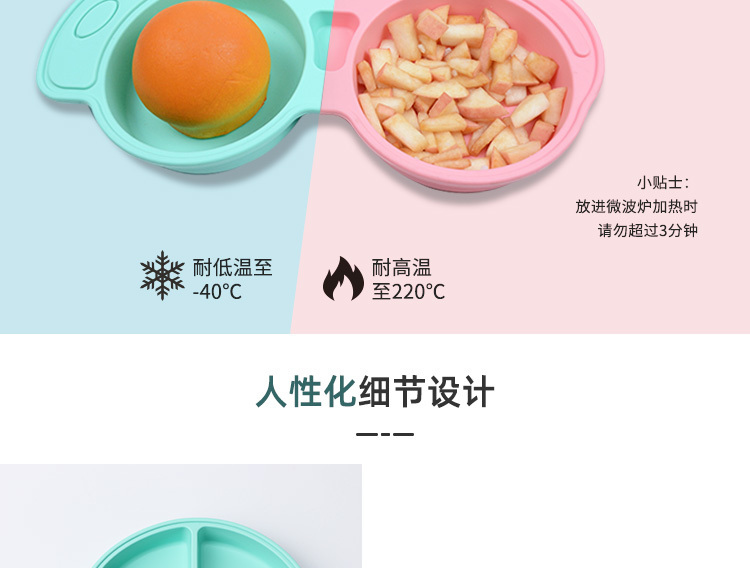 食品級(jí)硅膠,可含雙酚A、PVC安全性無毒性,耐高溫-20 ℃-120 ℃,裝燙一點(diǎn)兒的食材也徹底OK!有時(shí),小孩吃著吃著就一不小心把硅膠餐盤弄翻了。小汽車選用獨(dú)特止滑設(shè)計(jì)構(gòu)思,可密不可分迎合、死死地吸咐在餐桌表層,避免一瞬間滑掉及反而。