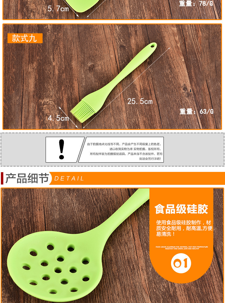 - 名稱:硅膠廚具9件套,硅膠廚具九件套,硅膠全包一體式廚具