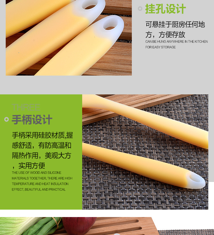 這套硅膠廚具完美的適用于家庭廚房,安全環(huán)保耐用,很好的保護(hù)了