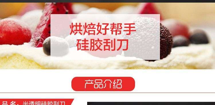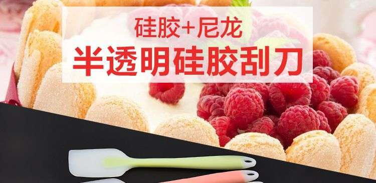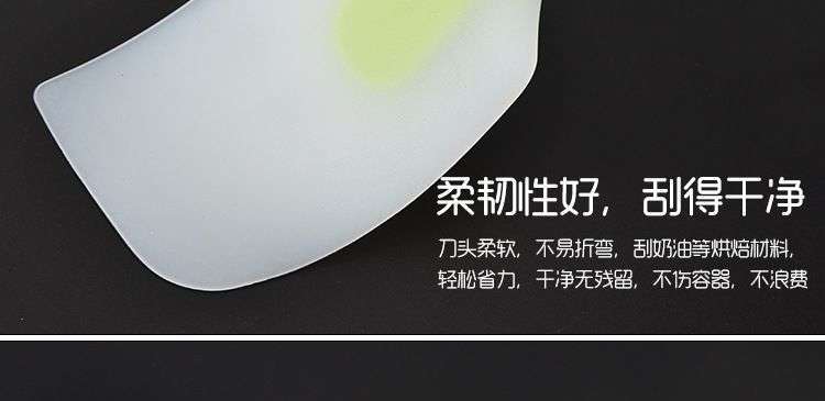 【用途】做蛋糕,攪拌蛋白和蛋糕面糊均勻而不消泡;可有效刮凈攪拌盆表面的殘留面糊、蛋白糊,集中食材并再次利用,減少損耗;抹平倒入模具中的面糊等等;清洗方便用于刮去不沾烤盤、不沾布、鋁合金烤盤等上面的殘?jiān)?、碎屑,不會刮傷產(chǎn)品表面。